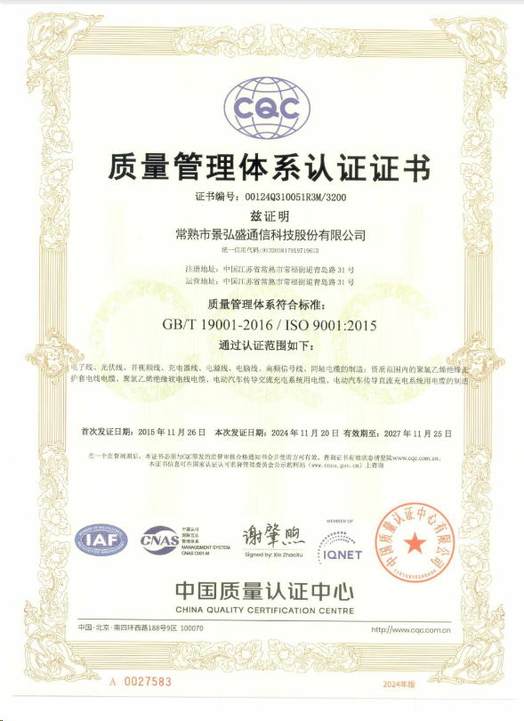 ISO 9001質(zhì)量管理體系證書